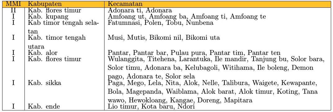 Informasi dampak berbasis kecamatan berdasarkan data observasi peralatan Acelerometer