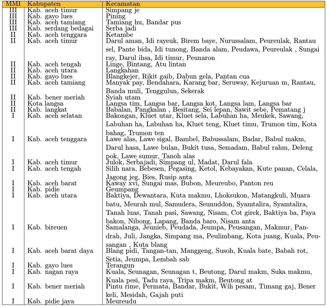 Informasi dampak berbasis kecamatan berdasarkan data observasi peralatan Acelerometer