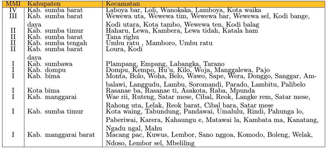 Informasi dampak berbasis kecamatan berdasarkan data observasi peralatan Acelerometer