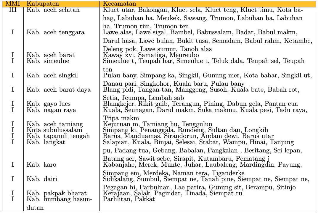 Informasi dampak berbasis kecamatan berdasarkan data observasi peralatan Acelerometer