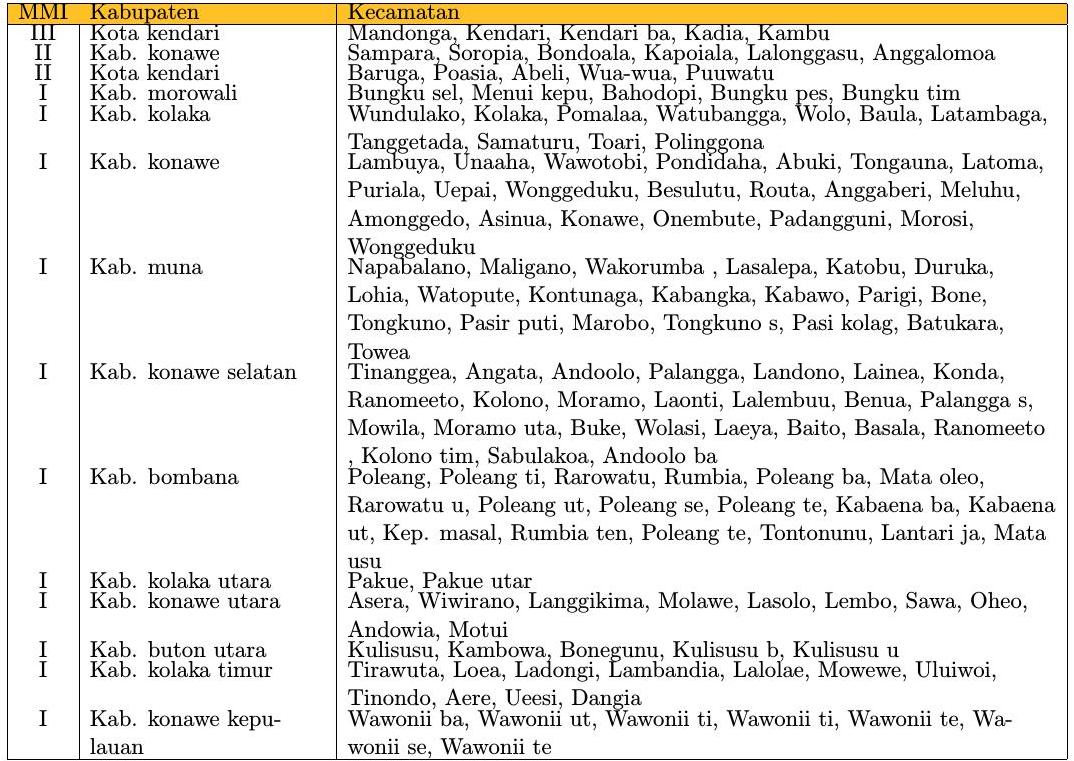 Informasi dampak berbasis kecamatan berdasarkan data observasi peralatan Acelerometer