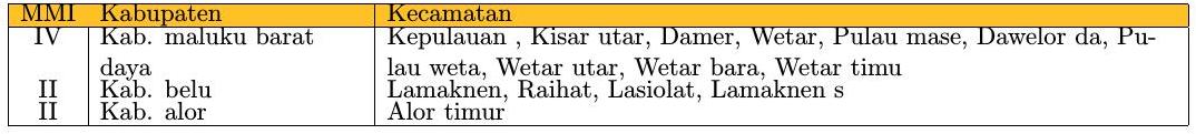 Informasi dampak berbasis kecamatan berdasarkan data observasi peralatan Acelerometer