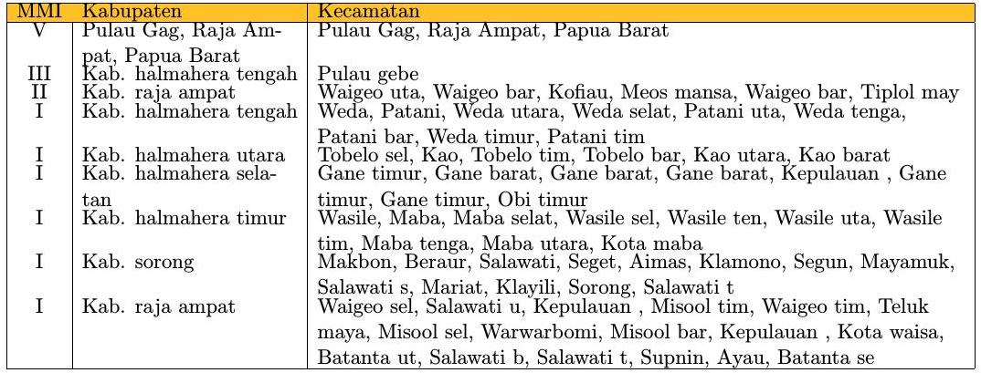 Informasi dampak berbasis kecamatan berdasarkan data observasi peralatan Acelerometer