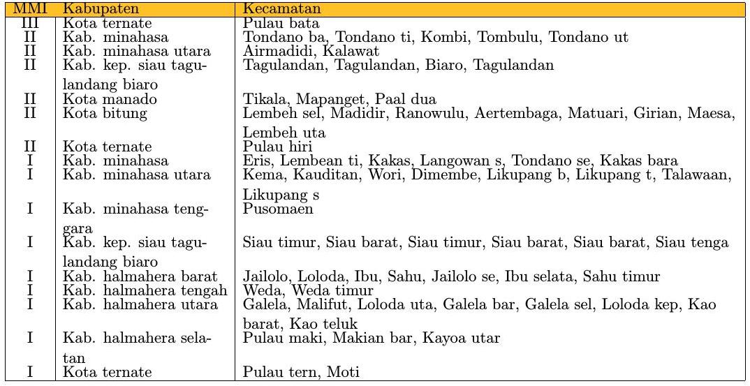 Informasi dampak berbasis kecamatan berdasarkan data observasi peralatan Acelerometer