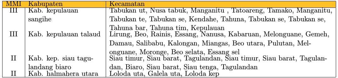 Informasi dampak berbasis kecamatan berdasarkan data observasi peralatan Acelerometer