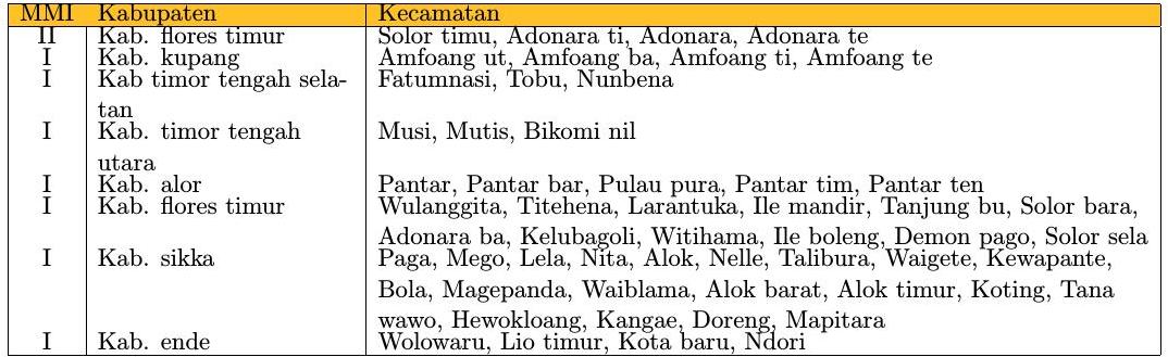 Informasi dampak berbasis kecamatan berdasarkan data observasi peralatan Acelerometer